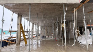 1. kerroksessa sähkäri on jo päässyt johdottamaan asuntoja.