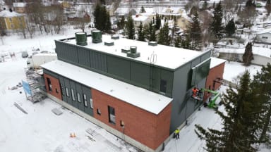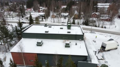 Putkiurakoitsija jatkoi totuttuun tapaan asennustöitään 1 kerroksessa sekä IV-konehuoneessa. Ilmanvaihtourakoitsija jatkoi myös asennustöitään samoissa tiloissa. Ilmastointikaton asennustyöt jatkuivat vielä viikolla 5. Viikolla 5 teräsrakenneurakoitsija asensi portaat sekä kulkusillan IV-konehuoneeseen kulkua varten. Myös henkilökunnan sisäänkäynnin teräsporras asennettiin paikoilleen. WC-tilojen alakatot saatiin myös työn alle. Työmaasta saatiin jälleen todella laadukasta kuvamateriaalia ammattitaitoisen dronekuvaajan toimesta, viikkotiedotteen päätoimittaja kiittää droneryhmää näistä kuvista!