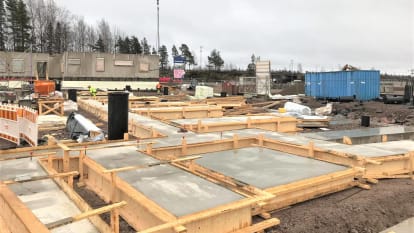 Tällä viikolla Postimiehessä ovat käynnissä C-ja D-portaan elementtiasennukset sekä VSS:n valu. Kuriirin puolella alkavat vasta-anturoiden muottityöt.