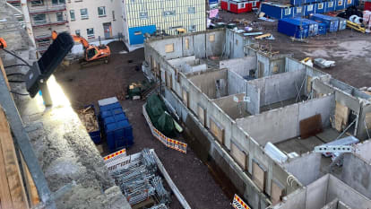 Tällä viikolla Kuriirissa on käynnissä anturoiden muottityöt. Postimiehen puolella on jatkettu 1.kerroksen elementtiasennusta.