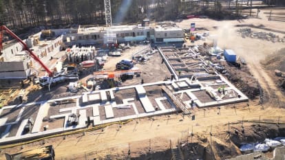 Tällä viikolla Kuriirissa tehdään vasta-anturoiden muottitöitä ja sylomer-asennusta. Postimiehen puolella jatkuvat elementtiasennukset sekä alapohjan viemäriasennukset.