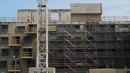 - C- ja D-portaan julkisivumuuraustelineiden pystytys