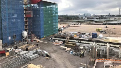 Tällä viikolla Kuriirin puolella on käynnissä A- ja B-portaiden alapohjan holvin raudoitus. Postimiehen puolella on käynnissä A- ja B-portaiden 3.krs elementtiasennus ja C- ja D-portaiden väliseinien asennus.