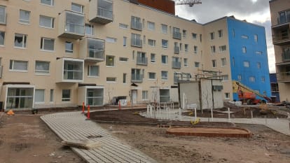 Tällä viikolla Kuriirin puolella on käynnissä B-portaan oviasennus ja D-portaan vedeneristys. Postimiehen puolella on käynnissä viimeistelytyöt ja pihatyöt.