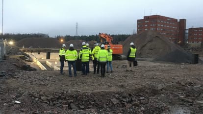 Tällä viikolla työmaalla jatkuvat anturapohjatyöt ja täytöt sekä muottityöt ja raudoitus. Kuriirin työmaakyltti on pystytetty työmaalle.