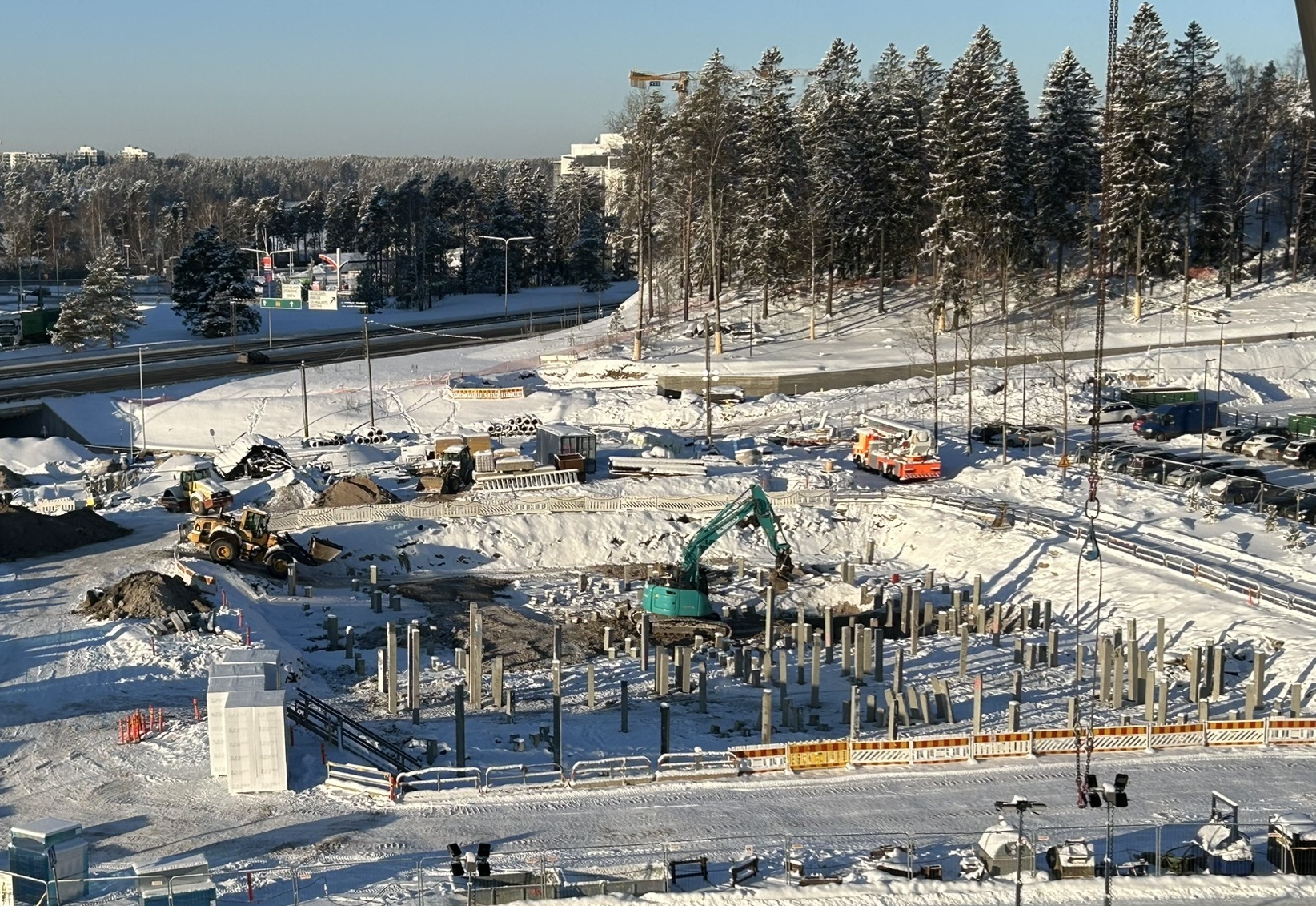 Pysäköintitalon paalutukset ovat viimeistä naputusta vaille valmis. Seuraava työvaihe pysäköintitalossa on anturoiden muottityöt.