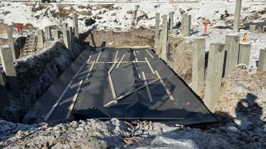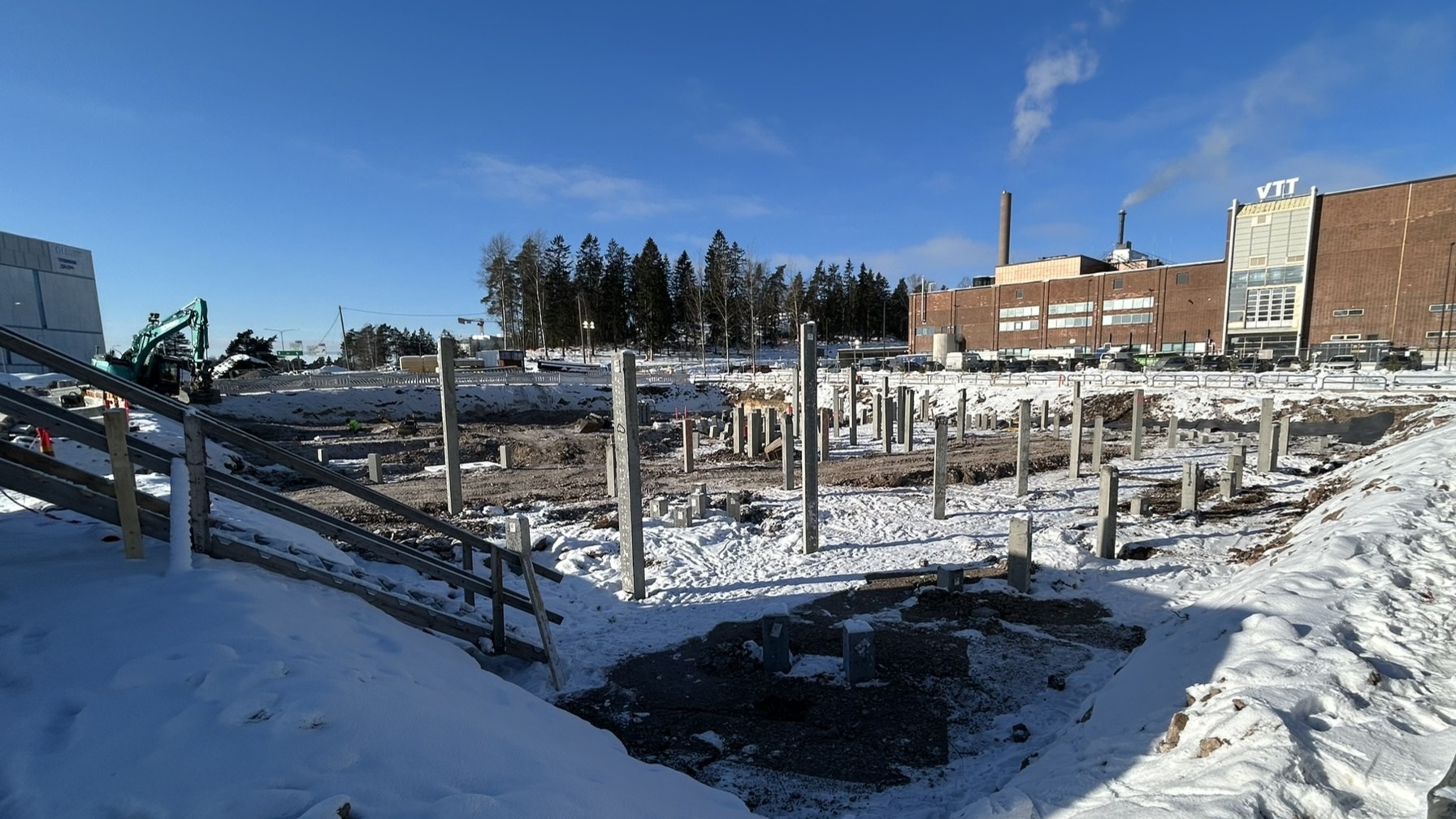 Pysäköintitalon montussa on laitettu hihat heilumaan. Maanrakentaja tehnyt anturapohjia ja katkaissut paaluja oikeaan korkoon. Ensimmäiset anturat on saatu myös valettua montun pohjalle.