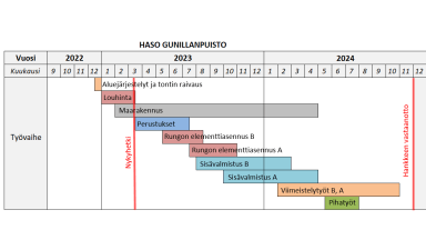 Työmaiden aikataulut (Gunillanpuisto ja Svanströminkuja):