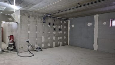 B-talon ensimmäiseen kerrokseen tulee yleisiä tiloja. Irtaimistovarastotiloissa (kuvassa) valmistelut maalaustöitä varten käynnissä.
