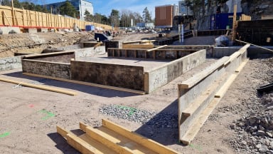 - Paikallavalusokkeleiden raudoitus- ja muottityöt B-talo lohko 1