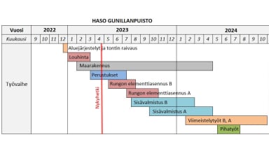 Työmaiden aikataulut (Gunillanpuisto ja Svanströminkuja):