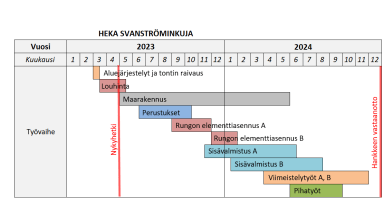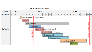 Työmaiden aikataulut (Gunillanpuisto ja Svanströminkuja):