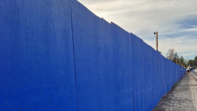 Gunillanpuiston työmaa-aita on maalattu tällä viikolla.