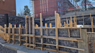 B-talon paikallavalusokkeleiden muotti- ja raudoitustyöt käynnissä
