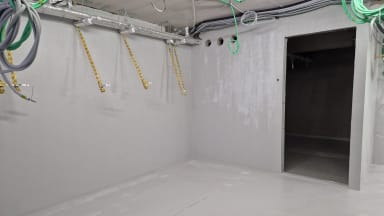 B-talon yleisissä tiloissa työt käynnissä. Kuvat B-talon pesulan vedeneristystöistä.