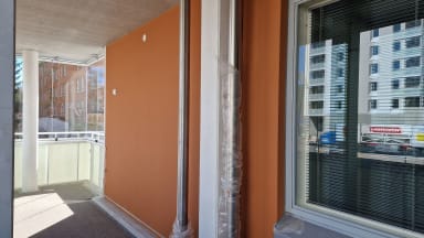 Parvekkeiden taustaseinien maalaustyöt käynnissä.