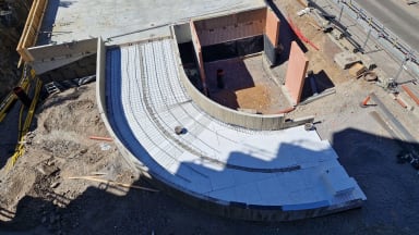 Autohallin ajoluiska valetaan tänään. Kuvassa valmistelutyöt käynnissä.