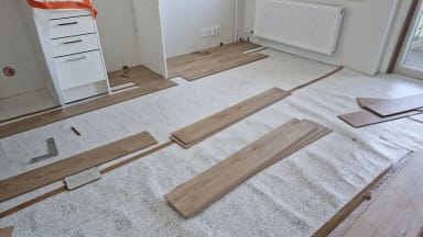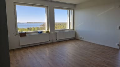 A-talon laminaattityöt ovat jo edenneet ylimpään kerrokseen. Asunnoista pääsee ihailemaan ympäröivää maisemaa.