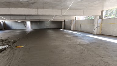 Autohallin maanvaraisen lattian eristeasennus käynnissä. Ensimmäinen osa lattiasta valettiin tällä viikolla.