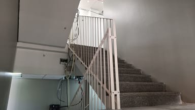B-talon porrashuoneisiin on asennettu lopulliset kaiteet.