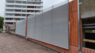 Autohallin julkisivuun on asennettu levyverkkoseinät.