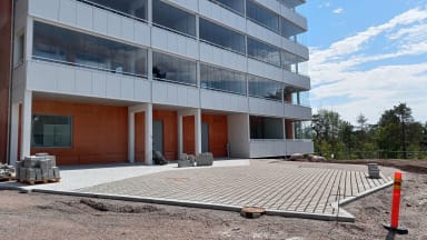 A-talon länsipuolen pihakiveystyöt ovat käynnissä.