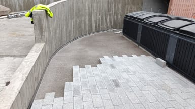 Autohallin kulmalla on pihakiveystyöt käynnissä.