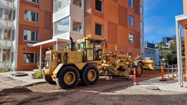 Piha-alueiden asfalttipohjien teko käynnissä.
