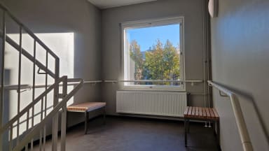 Kuvassa B-talon pääsisäänkäynti Gunillantien puolella.