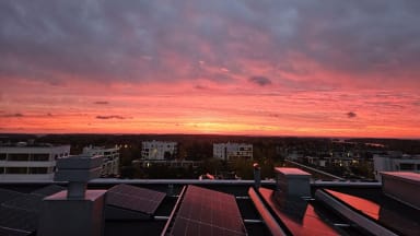 Upea auringonnousu tältä viikolta B-talon katolta.