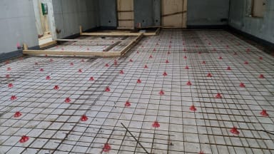 A-talon maanvaraisen lattian valuvalmistelut tiistaina..