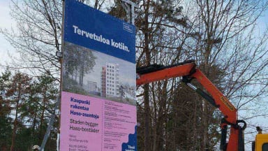 Haso Gunillanpuiston työmaakyltti pystytettiin maanantaina.