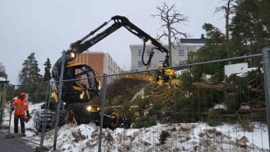 Haso Gunillanpuiston työmaa on lähtenyt käyntiin työmaan aitauksella sekä puiden kaadolla.