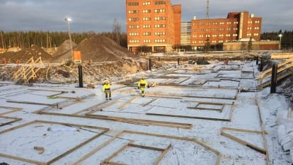 Tällä viikolla tasausvalun muottityöt jatkuvat Postiljoonin puolella. Kustinpolun puolella käynnissä ovat anturapohjatyöt.