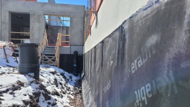 Ensimmäisen pihavaraston sokkelit valetaan tänään. Sokkelilevyjen asennus on aloitettu ja samalla täytetään sokkelien vierustat. Ulkopuoliset vedeneristystyöt jatkuvat.