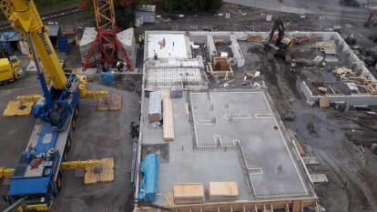 - Torninosturin perustusten laudoitus-, raudoitus ja betonointityöt