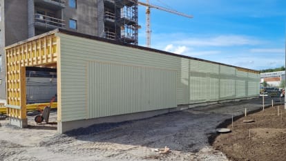 - Autokatoksen puurunko on valmis, viherkaton työt ja panelointi käynnissä.