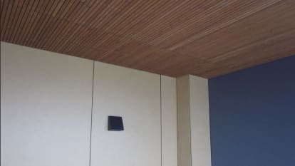 Pääkuvassa yhteiskäyttöterassin seinät ja alakatto.