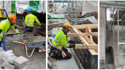 Työmaalla rakentaminen etenee suunnitelmien mukaan, vaikka sitkeät flunssat ovat jonkin verran kaataneet porukkaa petiin. Henkilöstöä on muistutettu hyväksi havaituista keinoista, joilla jokainen voi omalla toiminnallaan pienentää riskiä virusten leviämiseen.