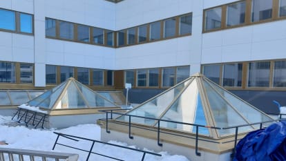 Kiinteistön ilmanvaihdon mittaus- ja säätötyöt on saatu valmiiksi. Parhaillaan tarkastetaan rakennusten painesuhteita ja tehdään hienosäätöjä.