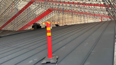 Kuva: Konesaumatun peltikaton asennus käynnissä D-lohkolla
