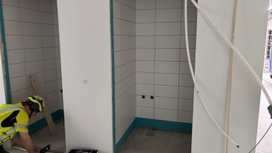 Kuvat: Vedeneristys- ja laatoitustyöt käynnissä 2.krs