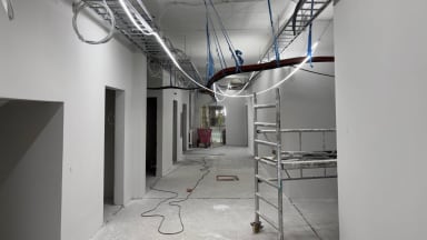 Kuva: Mattotyöt käynnissä A-lohkon toisessa kerroksessa