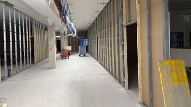 Kuvat: Kipsilevyväliseinien työt käynnistyneet A-lohkon toisessa kerroksessa.