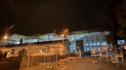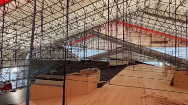 Kuva: Muuraustelineet ja sääsuoja valmistunut D-lohkolla