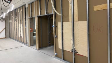 Kuvat: Väliseinätyöt käynnissä 1.krs A- ja B-lohkolla