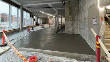 B-talolla 1. kerroksen pintabetonilattiavalut käynnissä.
