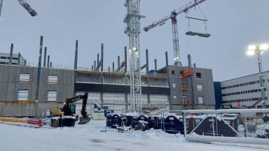 3. kerroksen pilarit on asennettu ja parhaillaan on käynnissä palkkien asennukset.
