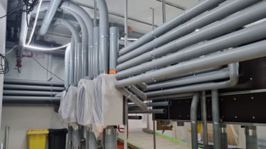 4.kerroksessa IV-asennuksia ja IV-putkien eristyksiä.