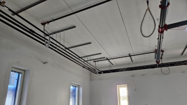 Sähkökalusteita asennettu kouruihin.